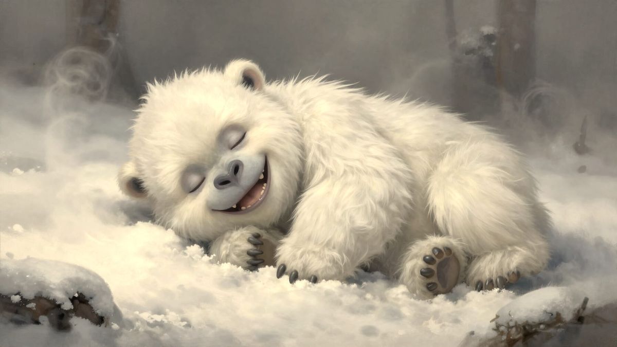 Baby Yeti Sleeping Peacefully in Snowy Fog