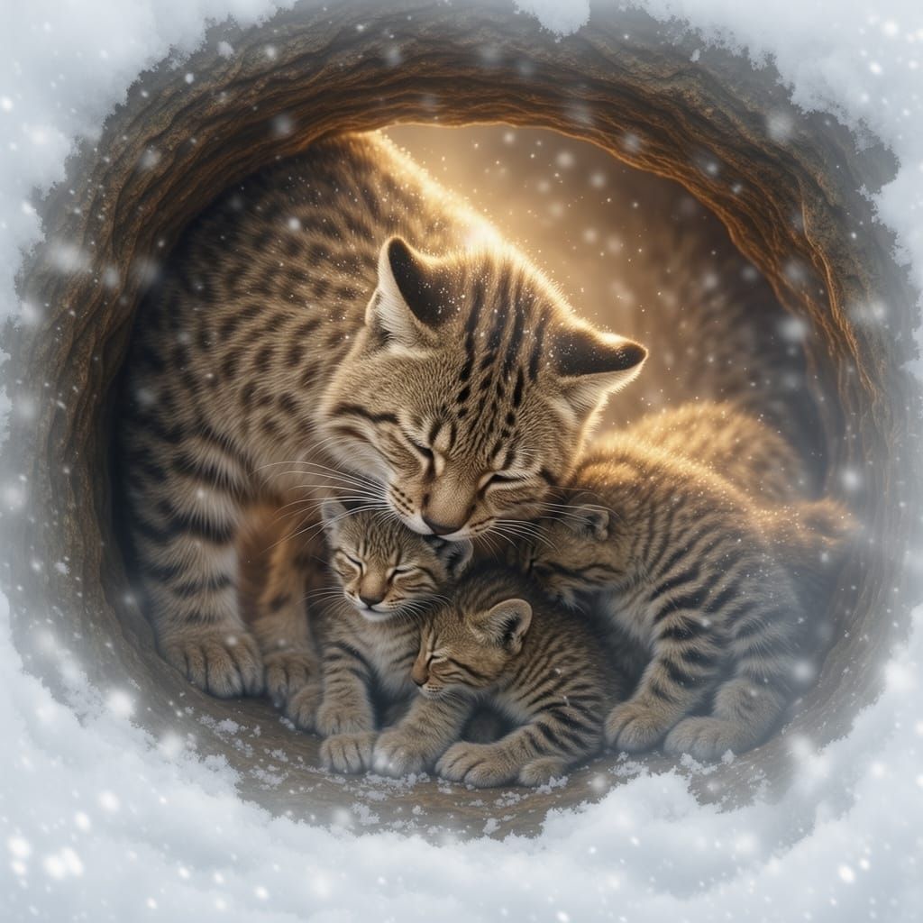 Generate unique images of lynx with their cubs in cozy dens. Try our free AI image creator today!