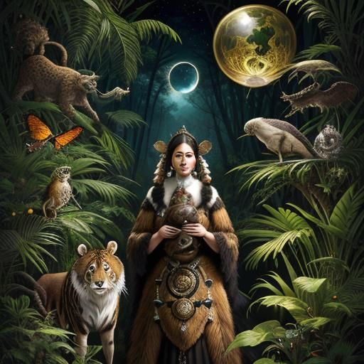 This image features a stunning, feral creature in its natural habitat, showcasing intricate details and textures reminiscent of a vibrant rainforest ecosystem.
