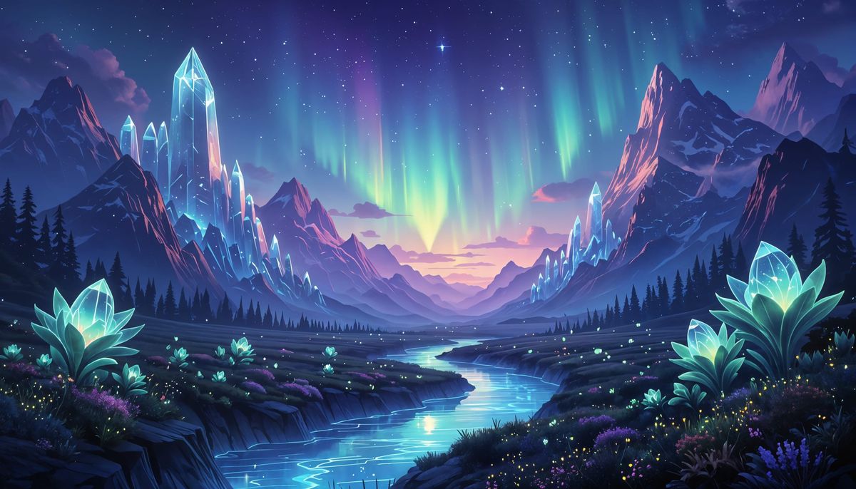 This image showcases a stunning and imaginative fantasy landscape, evoking a sense of wonder and adventure. It's a visually rich depiction of an otherworldly realm.