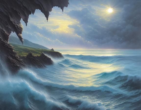Make your own vivid watercolor paintings of angry seas and dramatic coastlines with our free AI image generator.