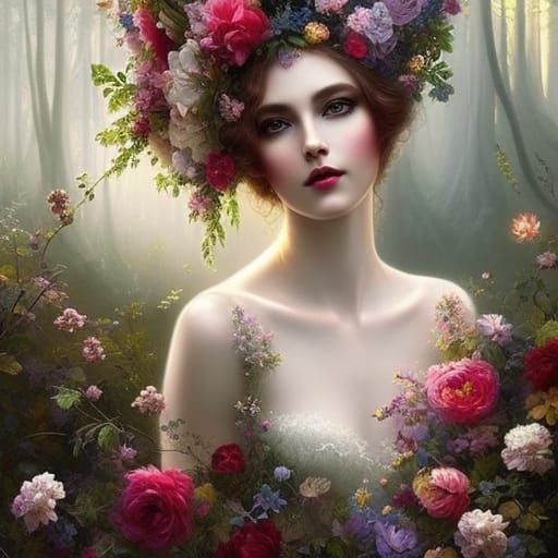 Enchanted Forest: Woman with Flower Crown in Hyperdetailed F...