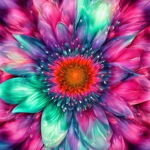 This image shows a surreal cosmic flower with swirling nebulae petals, emitting an ethereal glow. Rendered in a vibrant, painterly style with dynamic lighting, it evokes a sense of lost grandeur.