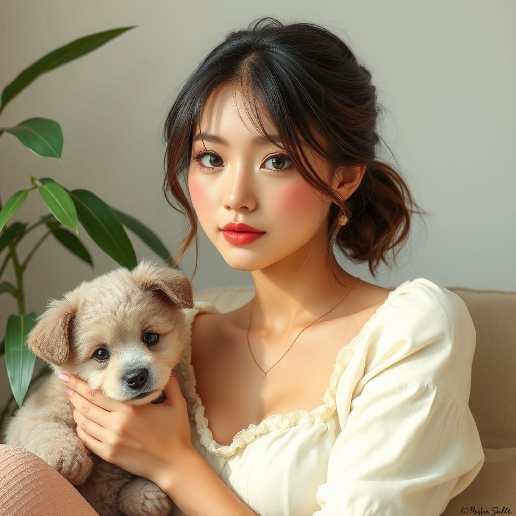 This image is a digital representation of a soft and feminine subject, created with an emphasis on gentle curves and delicate features.