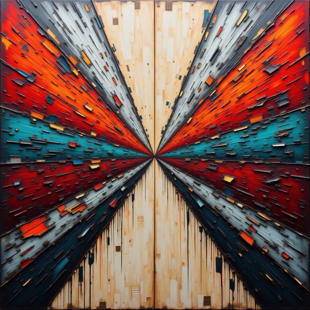 Unleash your creativity! Generate unique abstract geometric burst paintings with AI, easily and for free.