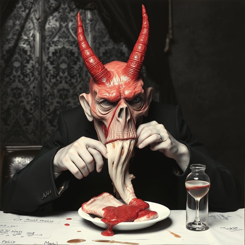 This image is a dark, surreal representation of a gooey substance, blending the styles of various artists to create a unique and unsettling visual experience.