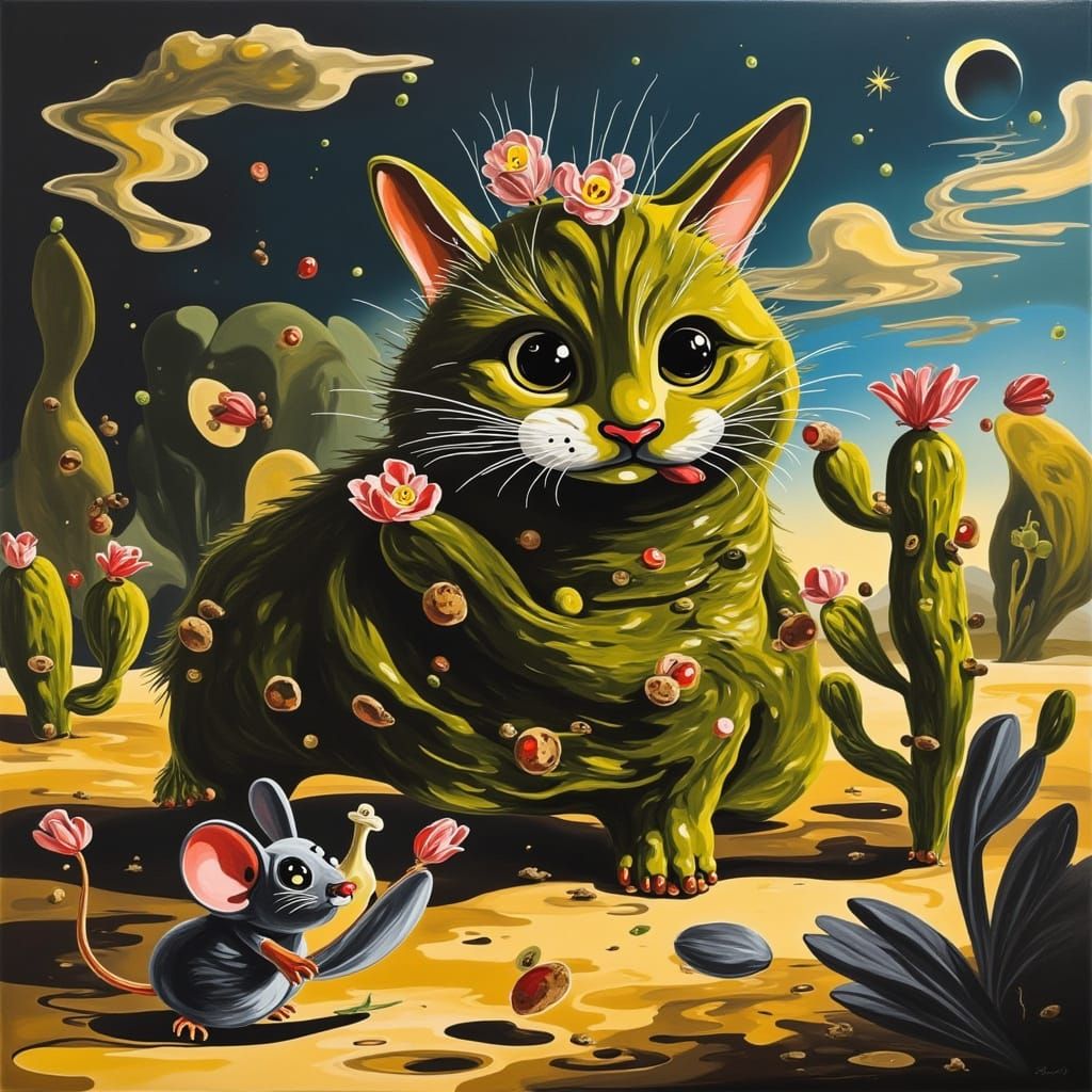 Easily generate unique images of fat furry cats playing with mice, or any other scene you can imagine, with our free AI tool.