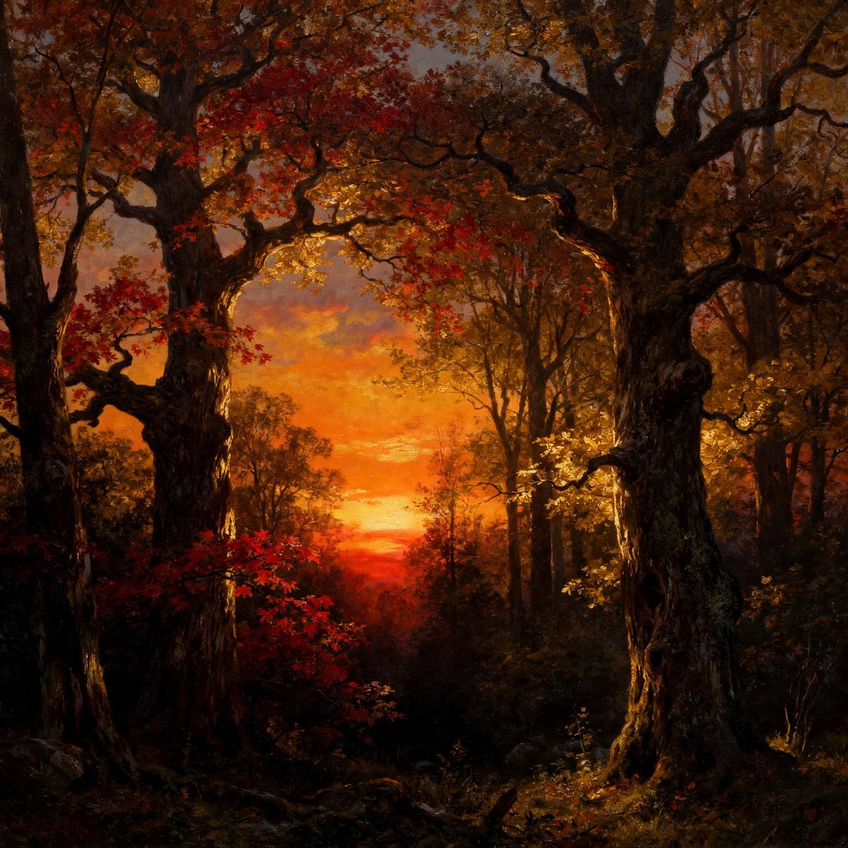 Sun going down in the big woods