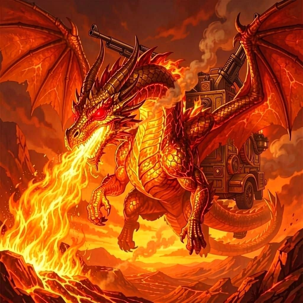 A powerful AI-generated image showcases a majestic fire dragon, depicted with intense flames and a dynamic pose. This artwork captures the mythical creature's raw power and fiery essence.
