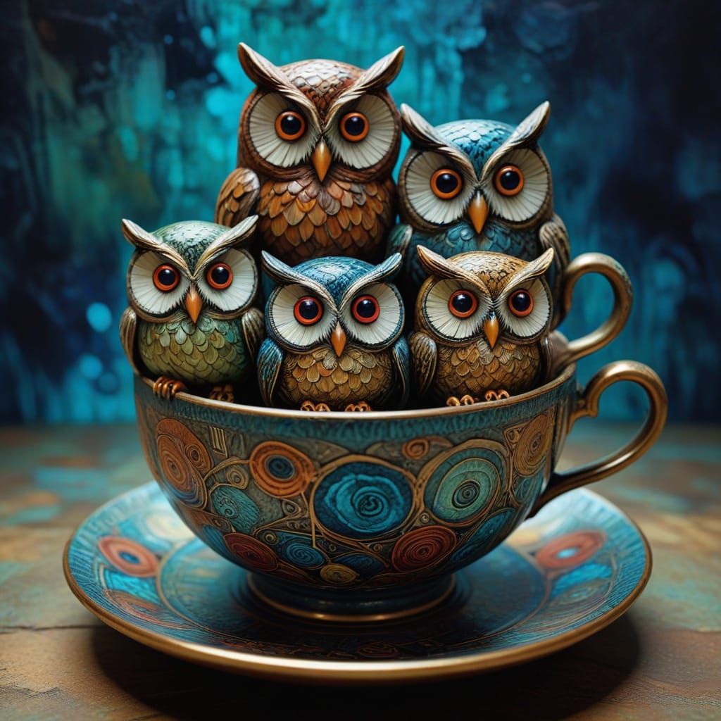 Easily generate unique images of owls in teacups with our free AI tool. Get creative now!