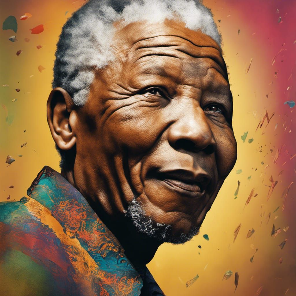 This image shows a hyperrealistic portrait in the style of splash art. The subject is rendered in intricate detail with dramatic lighting and a colorful background.