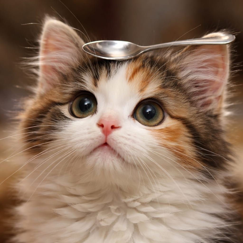 Easily generate adorable fluffy kitten pictures with a spoon using our free AI tool. Get creative now!