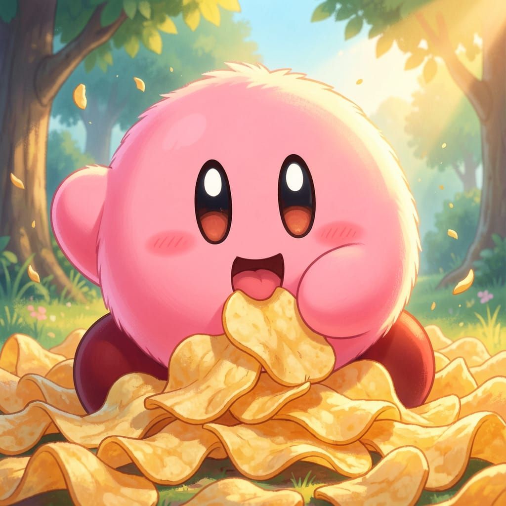 Easily generate fun AI images of Kirby enjoying his favorite snacks. Try it for free!