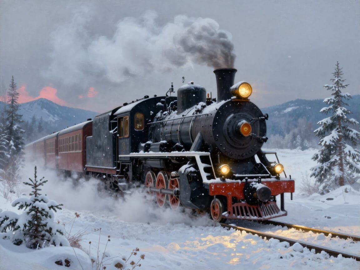 Generate your own dramatic winter train images with our free and easy AI tool. Unleash your creativity now!