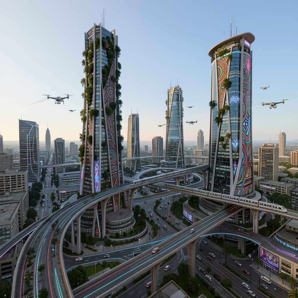 Easily generate futuristic city images with our free AI tool. Explore endless possibilities for your unique vision.