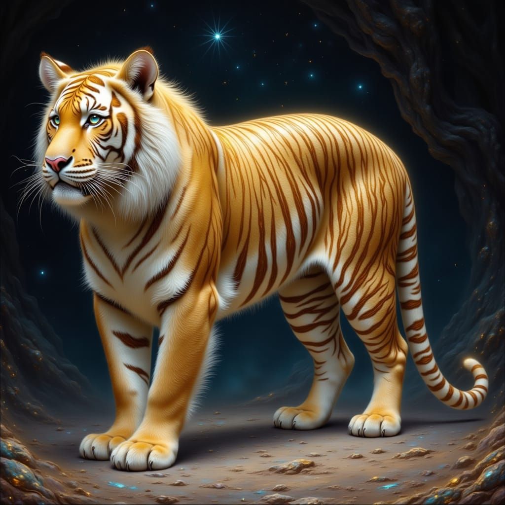 Easily generate stunning gold and cream pearlescent tiger images with our free AI tool. Unleash your creativity now!