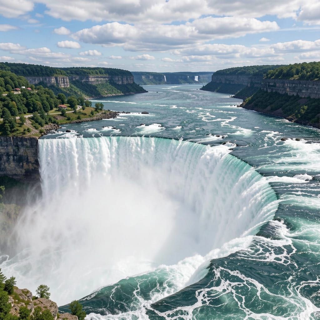 This image captures the immense power and beauty of Niagara Falls. A breathtaking natural wonder with cascading water.