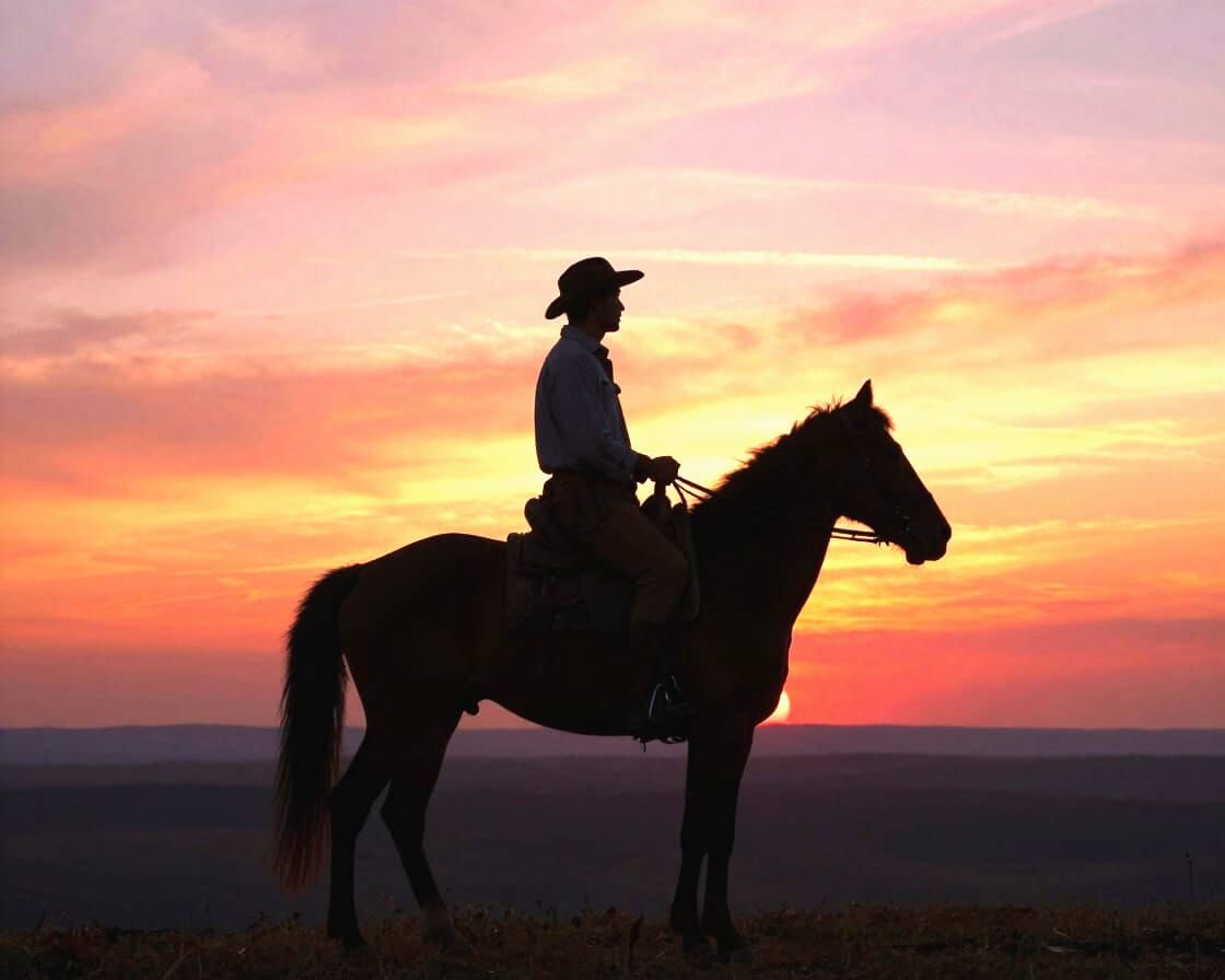 This image depicts a solitary rider on horseback, evoking a sense of adventure and the open road. The scene is visually striking and open to interpretation.