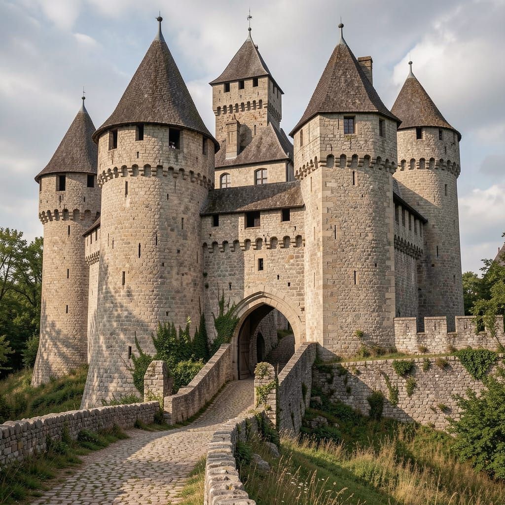 This AI-generated image showcases a grand medieval fortress, evoking a sense of historical architecture and imposing strength.