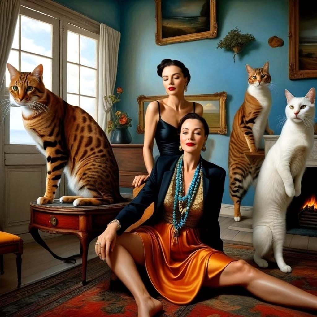 stunning photorealistic surrealistic image in the style of Cesar Santos, Yigal Ozeri, Esao Andrews, Georgia O’Keeffe, Gertrude Abercrombie, Salvador Dali, Igor Morski, Andrey Bobir, Dorothea Tanning, Giorgio de Chirico, David Michael Bowers, Brooke Shaden, photorealistic beautiful mature ladies in surrealistic ...
