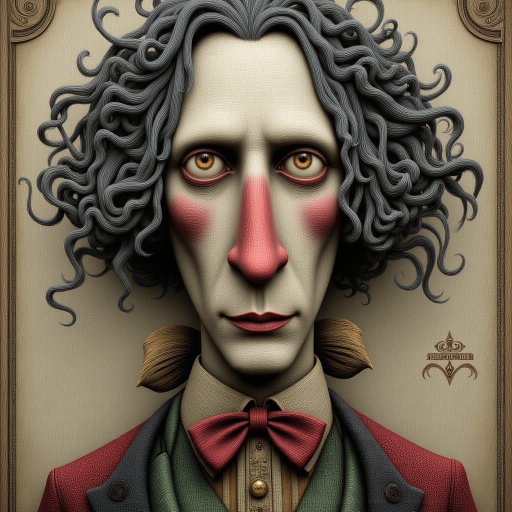 This image portrays the Joker as the one true fool, captured in a style that blends surreal and humorous elements.