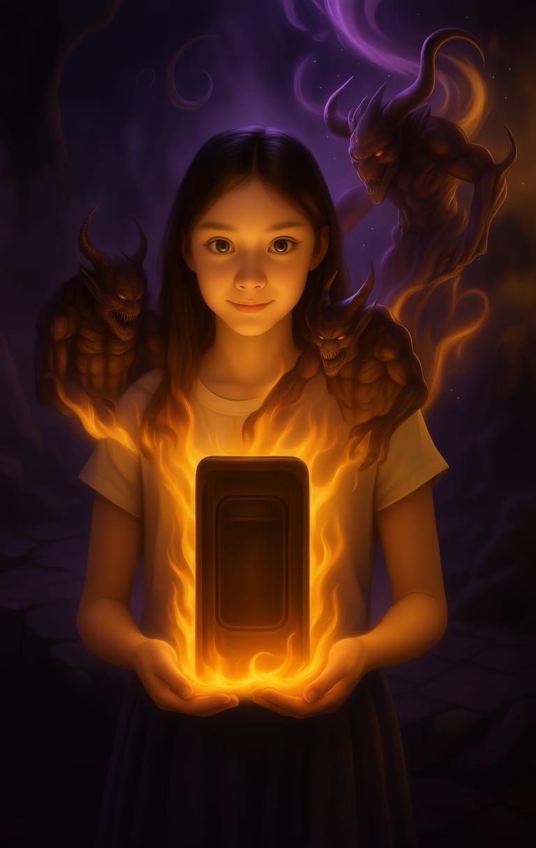 This image depicts Pandora opening her box, releasing the seven deadly sins. Created with dynamic lighting and deep colors in a dark fantasy concept art style.