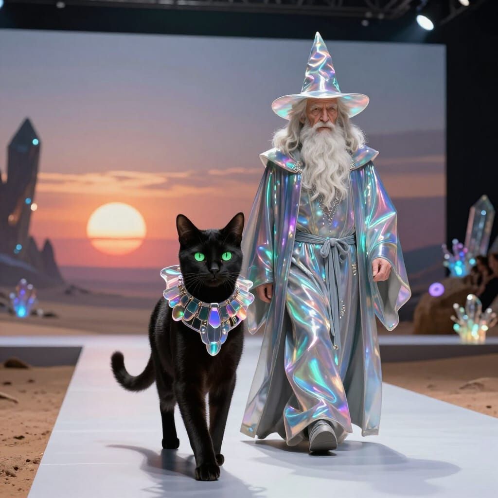 Futuristic Cat and Wizard on Alien Runway