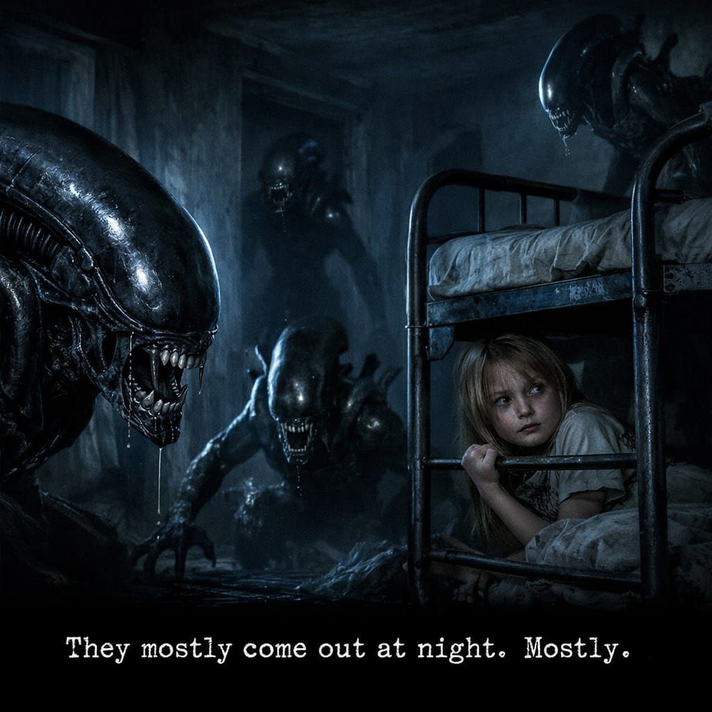 This image depicts creatures emerging from the shadows during the night. The scene evokes a sense of mystery and the unknown, capturing a moment of quiet suspense.
