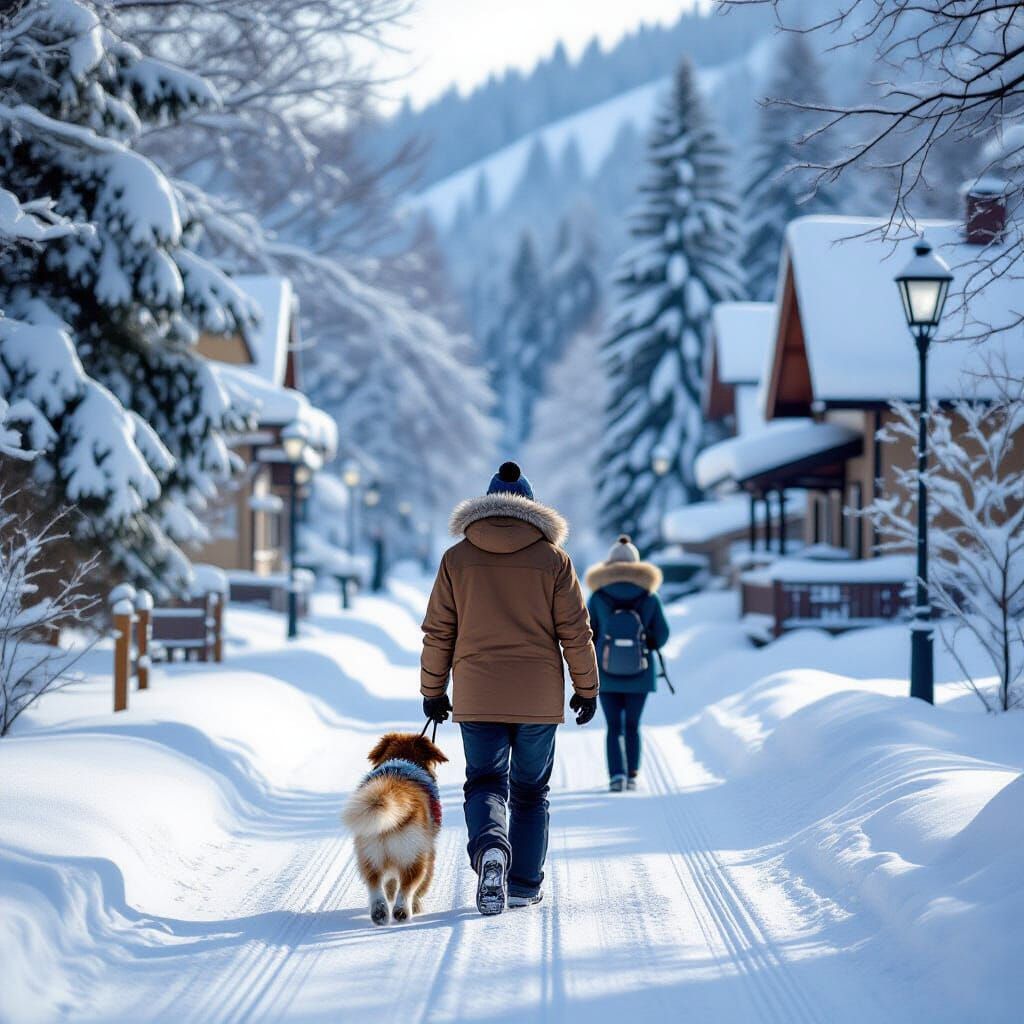 This AI-generated image depicts a scene of returning home after a winter holiday, evoking feelings of warmth and reflection.