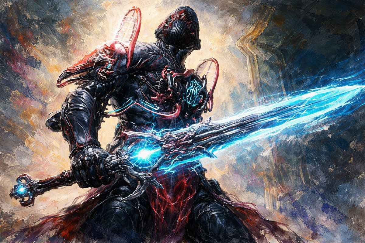 This image shows a dark figure, the Shadow Stalker, posed as a conquistador. It is rendered in a museum-quality, impressionist style with thick, textured brush strokes, evoking an acrylic gouache painting.